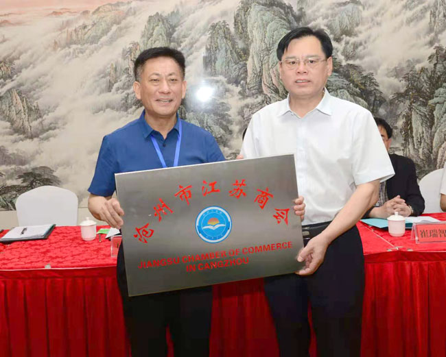 2021年1月6日在市委市政府的亲切关怀下,经在沧苏商反复酝酿并提议,由沧州荣盛房地产开发有限公司、达力普集团有限公司等10个单位发起成立沧州市江苏商会,谢金永任筹备小组组长。受谢金永组长的委托,商会筹备小组副组长李建华一行到我市临港经济技术开发区联系会员,商议筹建具体事宜。